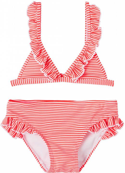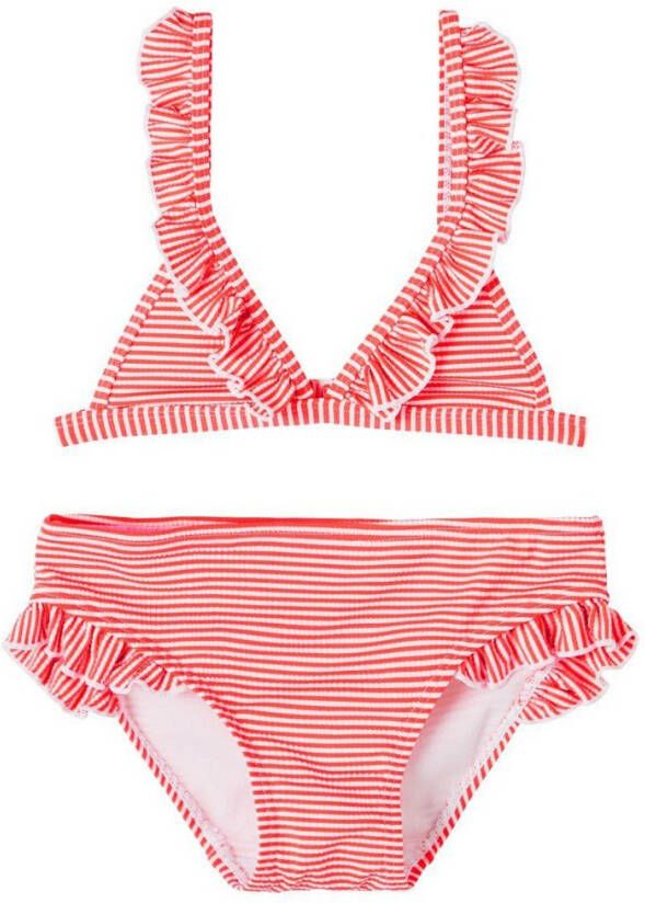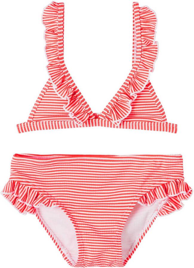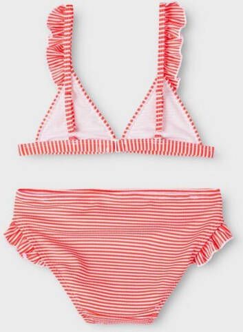 NAME IT KIDS gestreepte triangel bikini NKFZANNAH met ruches rood/wit